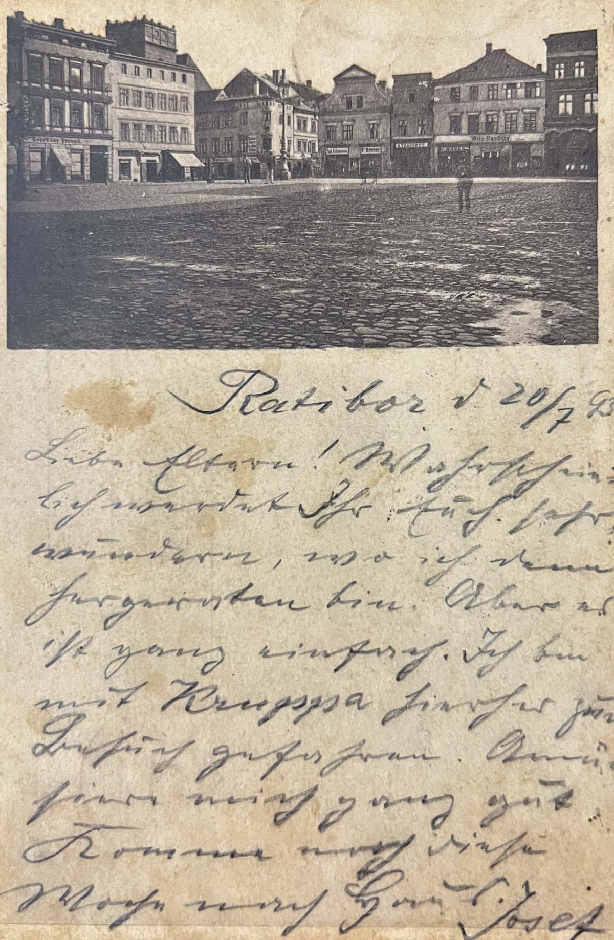 Mamy więc przynajmniej dwie najstarsze pocztówki, a niewykluczone, że jest ich więcej, bo z tej serii wydawniczej znany jest także widok na raciborski Rynek. Egzemplarz wysłany w maju 1895 r. znajduje się w Muzeum w Raciborzu. Pochodzi z kolekcji śp. Alfreda Otlika. Kolejny, datowany na 1893 r., jest w zbiorach prywatnych.